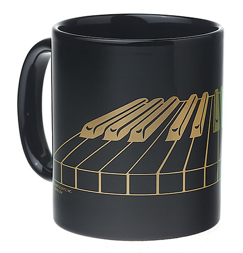 A classically shaped tea or coffee mug in jet black that is pleasingly heavy and is embossed with a glamorous gold-coloured musical motif. Whether you enjoy a drink of coffee first thing in the morning or a cocoa before you retire for the evening, these sturdy, microwave and dishwasher proof mugs are the ideal gift for a musician or music lover.
