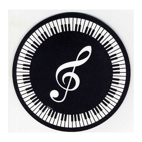 Description : Un tapis de souris original en forme de cercle et orné d'une clef de sol et d'un clavier.