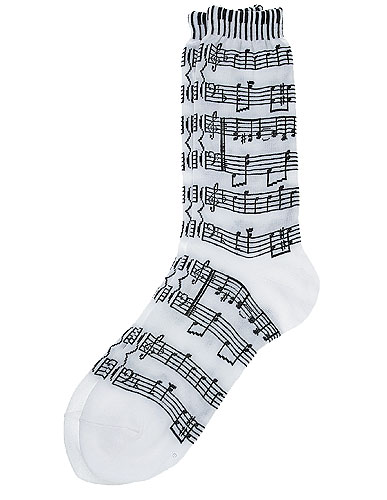 [Women's Socks : Sheet Music & Keyboard (White/Black)]