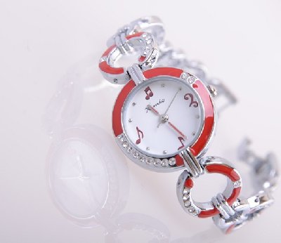Description : Discrète, féminine et élégante, cette montre au bracelet métal argent avec incrustations Rouges conviendra pour toutes vos sorties musicales.' ' Diamètre du cadran : 2,5 cm ' Longueur du bracelet : 19 cm'