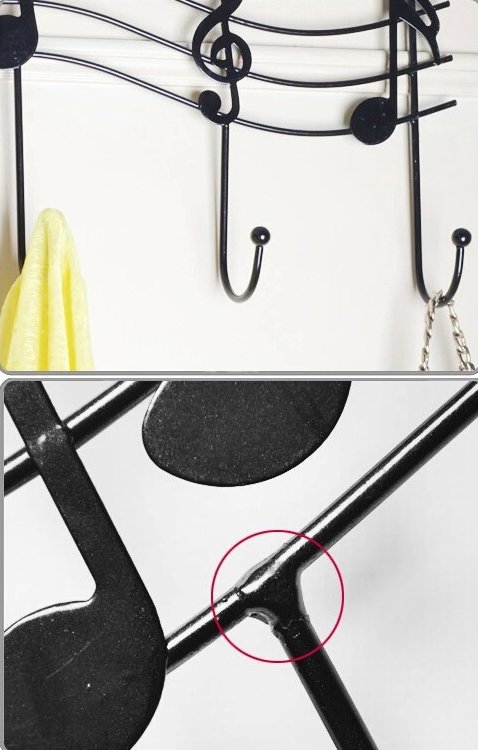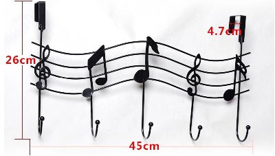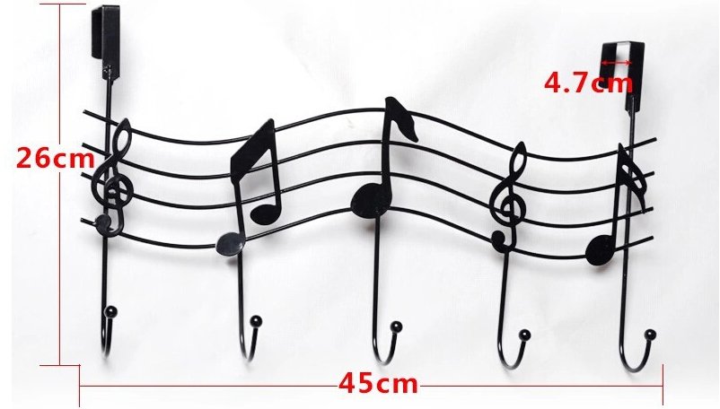 Description : Superbe porte-manteau métallique en forme de Portée de Musique Noir. Excellente finition, très solide. Se fixe avec 2 pattes de fixation prévues pour une porte par exemple. '''''