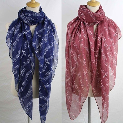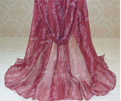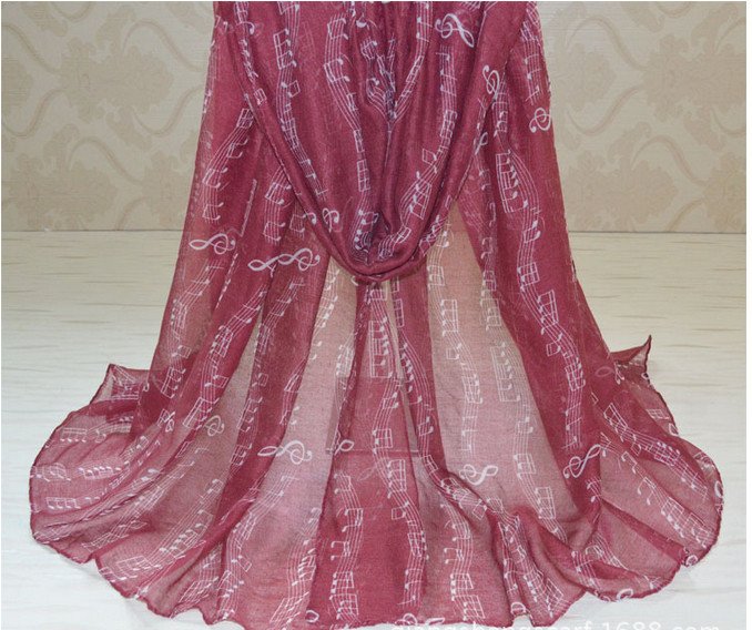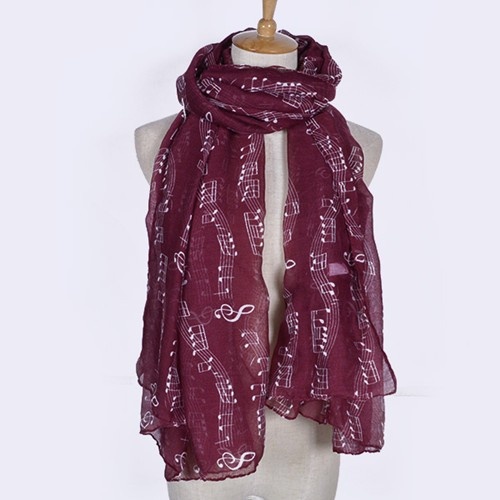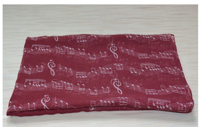 Description : Superbe foulard de couleur bordeaux. Le matériau utilisé conviendra aux peaux les plus sensibles.' ' La taille du foulard est grande et permettra diverses utilisations. ' ' Cadeau original pour musicien(ne) ou tout autre amateur de musique.' ' An awsome scarf with music notes and G Key.' ' Amazing Scarf with amazing Bordeaux Color. Soft Material of the scraft will be good even for very sensitive skin.' ' The size of this musicain scarf is pretty big that you can make many different compositions.' ' This scarf will be an unreplacable detail of your wardrobe. ' ' It can be also an original gift for musicians and everyone who likes music.' ' 100 % viscose' Dimensions : 190 cm X 90 cm