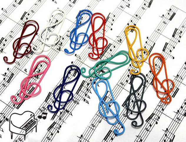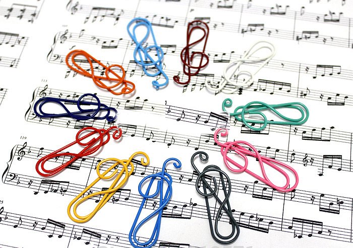Description : Assortiment de 14 trombones multicolores en forme de clé de sol. ' ' Idéal pour les professeurs ou étudiants, amateurs ou professionnels, quiquonque aime la musique !