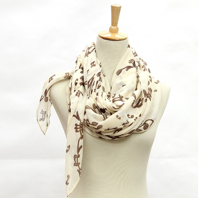 [Beige & Brown Scarf with Musical Notes]