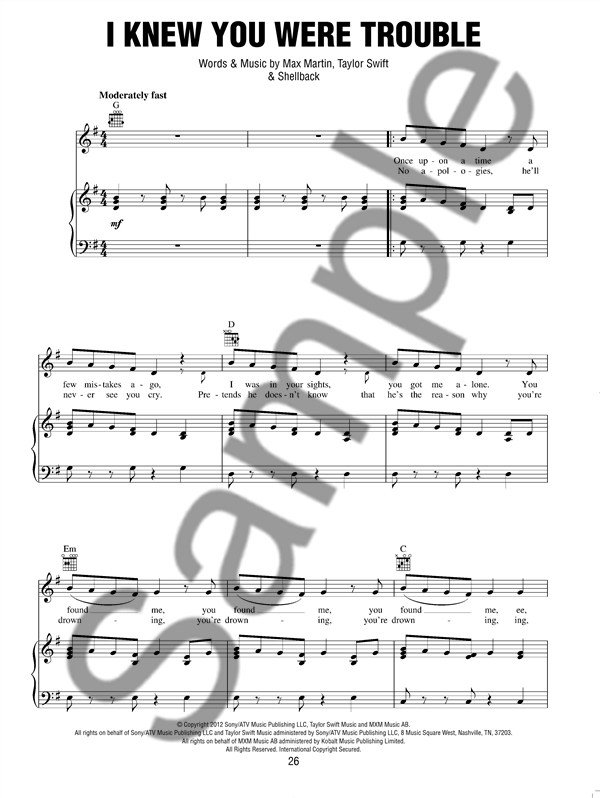 Description : Red est le premier album de Taylor Swift classé numéro 1 des ventes en Angleterre. Ce recueil comprend les titres We Are Never Ever Getting Back Together, Begin Again et I Knew You Were Trouble.