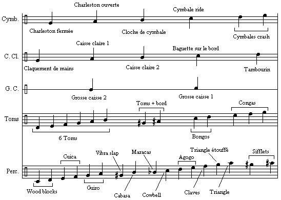 Vous pouvez utiliser les têtes de notes habituelles pour la batterie, individuellement ou globalement.