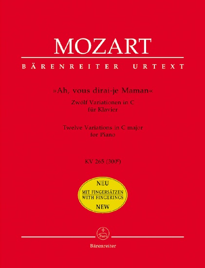 Description : The anonymous theme Ah, vous dirai-je Maman was known in Paris at least from 1761, and it became one of the most popular melodies for sets of variations after 1770.' ' Mozart apparently heard it in Paris and produced his variations on it in the summer of 1780 at the earliest or, more probably, in 1781–2 in Vienna,presumably with an eye to his teaching activities.' ' Our edition is based on two autograph fragments from the holding of the German Mozart Society in Augsburg and the Augsburg Mozart Association. All that is missing are variations 8 and 9 and the final five bars of variation 12. ' ' Unfortunately, the only known copy of the printed edition, published by Torricella in 1785 (presumably from the autograph manuscript), is incomplete.' ' In compensation, a good copyist’s manuscript obviously prepared from the Torricella print has survived in Kromìøíz¡ Castle in the Czech Republic.' ' We have drawn on this manuscript for those sections missing in the two other sources. – The many extra staccato marks added to variations 8 and 9 in modern editions are not to be found in the earlier sources and first occur in the Simrock print of 1803. But even where there are no staccato marks a non-legato attack is called for.