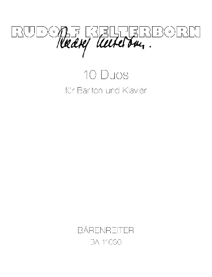 Description : The composer Rudolf Kelterborn about his work: “I call the ten compositions for baritone and piano ‘DUOS’ because the voice and instrument parts are treated musically with absolute equality and indeed often go their own independent ways. Two duos (‘Alles Gold’ and ‘Gegenlicht in den Bergen’) come from the ‘Ensemble-Book I’ for baritone and 14 instruments with texts by Erika Burkart (1990). ' ' The 10 duos do not form a complete cycle that can be heard only as an entire work. ' ' Smaller groups can be put together and presented according to text-related or musical aspects. The texts are by authors who have continued to inspire me for years.”