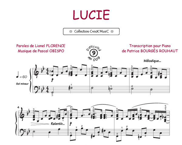 Description : Cette partition est issue de la collection CrocK'MusiC constituée de transcriptions de chansons françaises pour le Piano, acompagnées de leurs paroles.