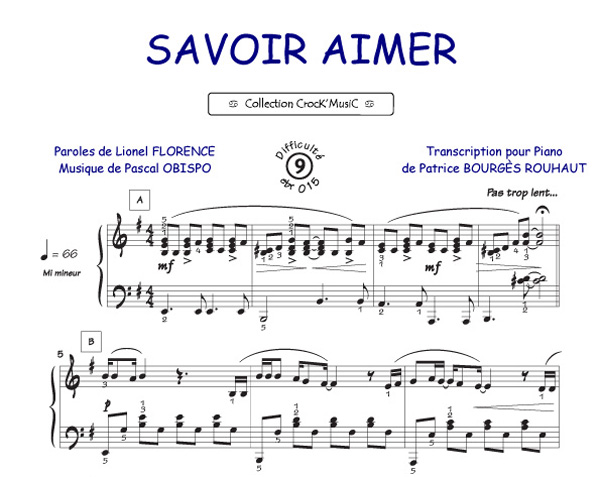Description : Cette partition est issue de la collection CrocK'MusiC constituée de transcriptions de chansons françaises pour le Piano, acompagnées de leurs paroles.