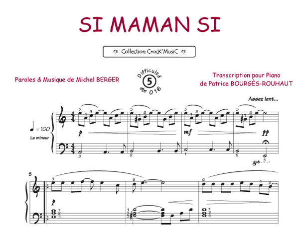 Description : Cette partition est issue de la collection CrocK'MusiC constituée de transcriptions de chansons françaises pour le Piano, acompagnées de leurs paroles.