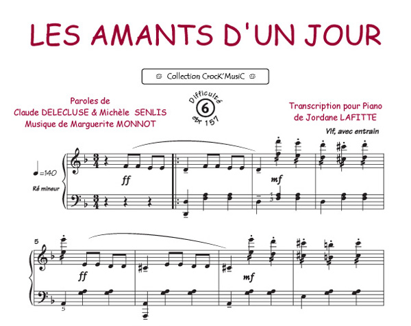 Description : Cette partition est issue de la collection CrocK'MusiC constituée de transcriptions de chansons françaises pour le Piano, acompagnées de leurs paroles.