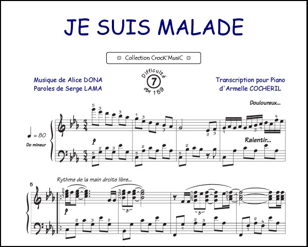 Description : Cette partition est issue de la collection CrocK'MusiC constituée de transcriptions de chansons françaises pour le Piano, acompagnées de leurs paroles.
