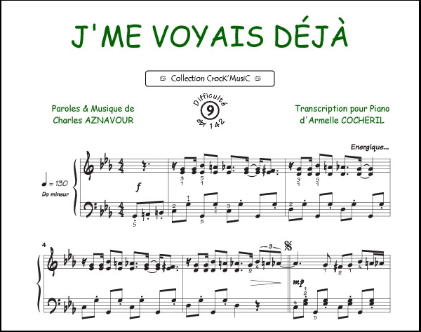 Description : Cette partition est issue de la collection CrocK'MusiC constituée de transcriptions de chansons françaises pour le Piano, acompagnées de leurs paroles.