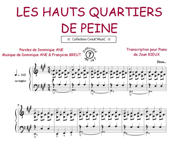 Description : Cette partition est issue de la collection CrocK'MusiC constituée de transcriptions de chansons françaises pour le Piano, acompagnées de leurs paroles.