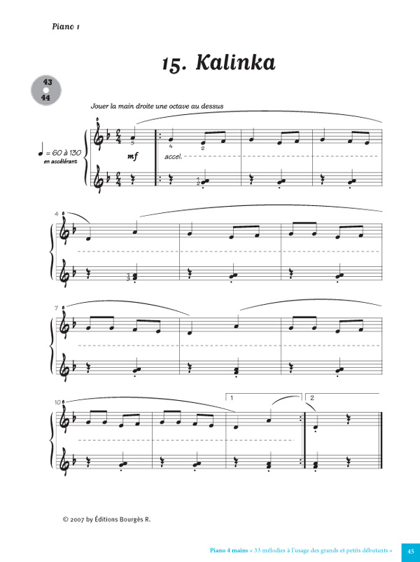 33 Mélodies pour Piano 4 Mains à l'usage des Petits et Grands Débutants + CD