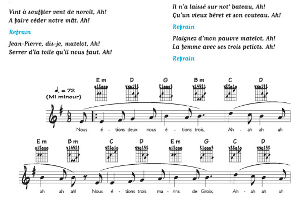 Description : Chaque feuillet propose une partition piano isolée avec doigtés et nuances, et une partition sous forme de grille contenant la partie chant, paroles, accords, tablatures guitare.