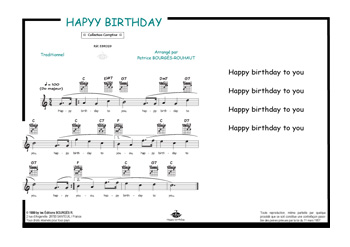 Description : Chaque feuillet propose une partition piano isolée avec doigtés et nuances, et une partition sous forme de grille contenant la partie chant, paroles, accords, tablatures guitare.