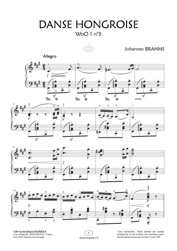 Danse Hongroise WoO 1 n°5 (Collection Anacrouse)