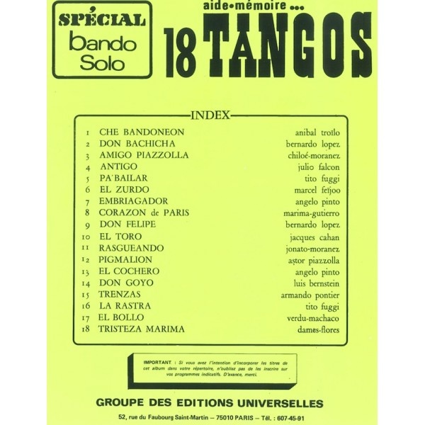 Aide Mémoire – 18 Tangos Spécial Bando Solo;