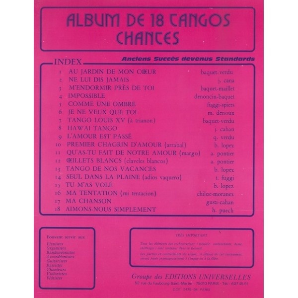 Description : Album De 18 Tangos Chantés.
