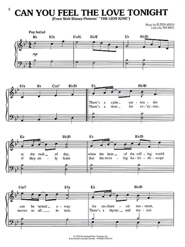 Can You Feel The Love Tonight Easy Piano