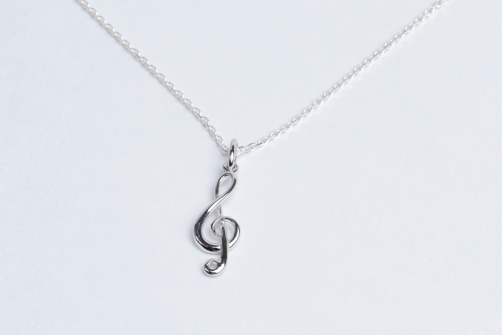 Pendentif Clé de Sol + Chaîne de cou 38 cm HazenArt (Argent Massif)