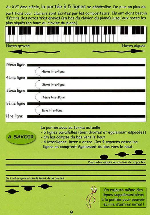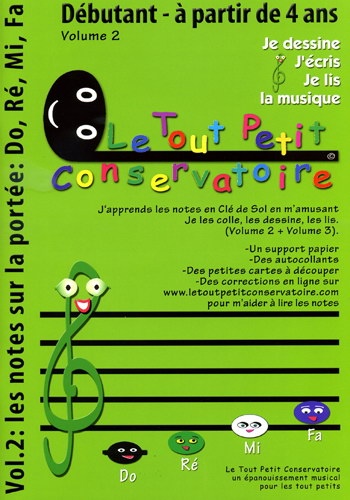 Description : Le tout petit conservatoire. Je dessine, j'écris, je lis la musique. Les notes sur la portée : Do, Ré, Mi, Fa.