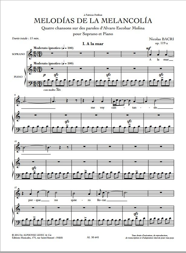 Description : Soprano et Piano' ' ' Quatre chansons sur des paroles d'Alvaro Escobar Molina