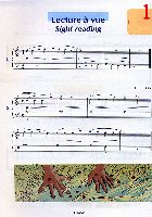 ' ' Lecture à vue : permet d'aborder le déchiffrage dès les premières années. Le but étant d'essayer d'éviter dans le futur le trop grand décalage tant de fois constaté entre le niveau instrumental et la lecture de la musique. Cette rubrique permettra aussi à l'élève de réviser les bases acquises dans le 1er volume.'