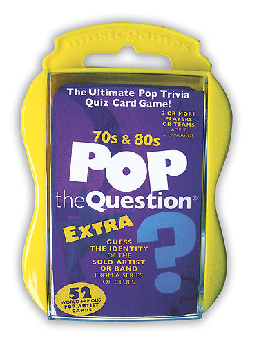 Description : An extra addition to the Pop the Question series – 52 more cards to add to your 70s & 80s collection! The ultimate Pop trivia card game, with a host of new artists and bands for you to identify! Guess the identity of the artist or band from the clues on the cards. The first player to guess wins that card and whoever has the most cards at the end of the game is declared the winner. Test your friends and family to find out who is the biggest music fan of you all! For 2 or more players or teams aged 7 and upwards.