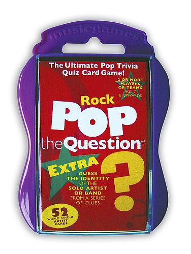 Description : An extra addition to the Pop the Question series - 52 more cards to add to your rock card collection! The ultimate Pop trivia card game, with a host of new artists and bands for you to identify! Guess the identity of the artist or band from the clues on the cards. The first player to guess wins that card and whoever has the most cards at the end of the game is declared the winner. Test your friends and family to find out who is the biggest music fan of you all! For 2 or more players or teams aged 7 and upwards.