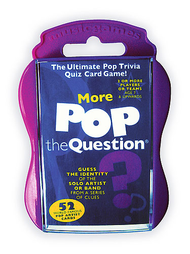 Description : More from the ultimate Pop trivia card game with a host of new artists and bands for you to identify! Guess the identity of the artist or band from the clues on the cards. The first player to guess wins that card and whoever has the most cards at the end of the game is declared the winner. Test your friends and family to find out who is the biggest music fan of all! For 2 or more players or teams aged 7 and upwards.