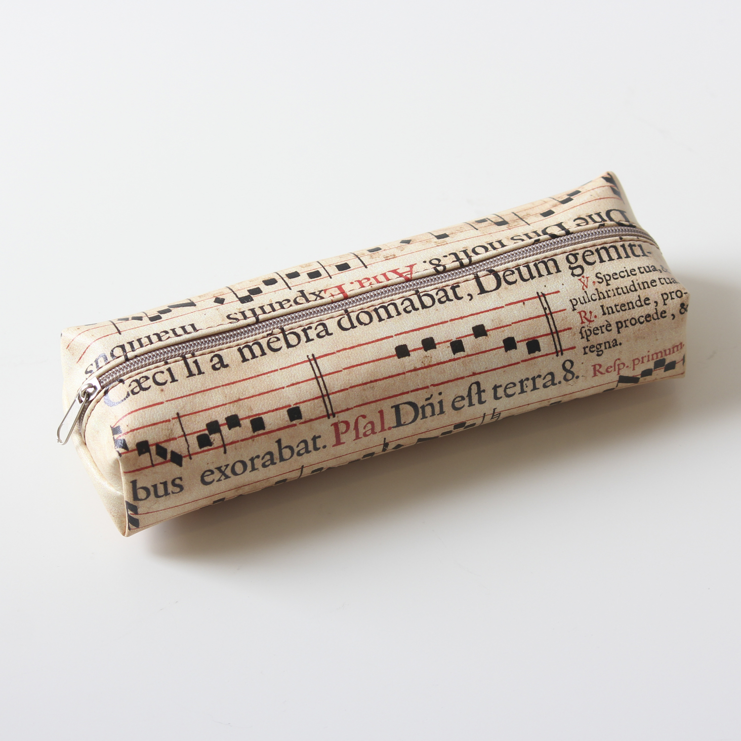 Description : Trousse décorée avec l'hymne de la Sainte Cécile en latin, Sainte des musiciens.
