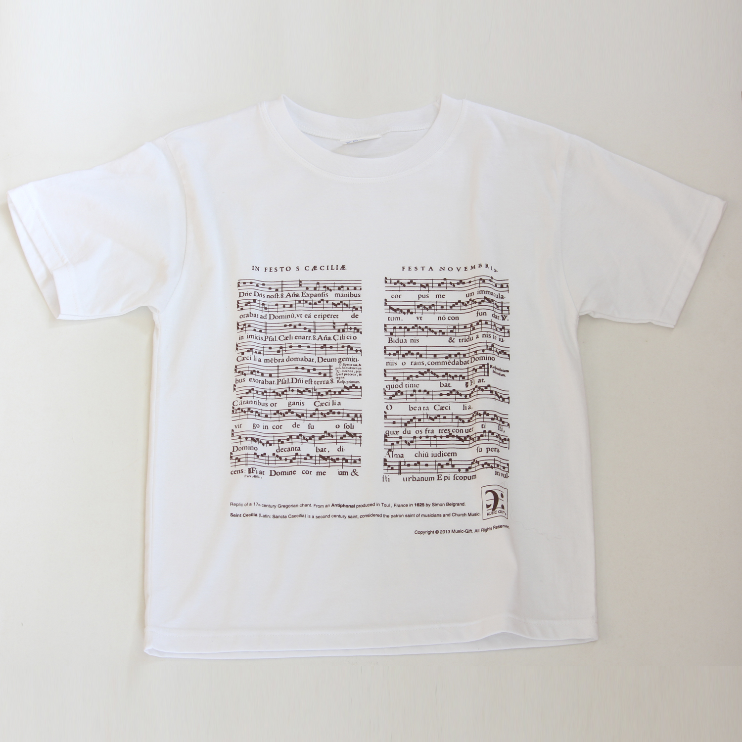 Description : Avec l'illustration de l'hymne de la Sainte Cécile, patronne des musiciens. '' '' Après avoir passé commande, merci de nous faire connaitre la taille désirée par email : info@note4piano.com '' '' With the hymn of Saint Cecilia, the patron saint of musicians and church music. '' '' Color: White'' '' Thank's to send us an email for the size : info@note4piano.com