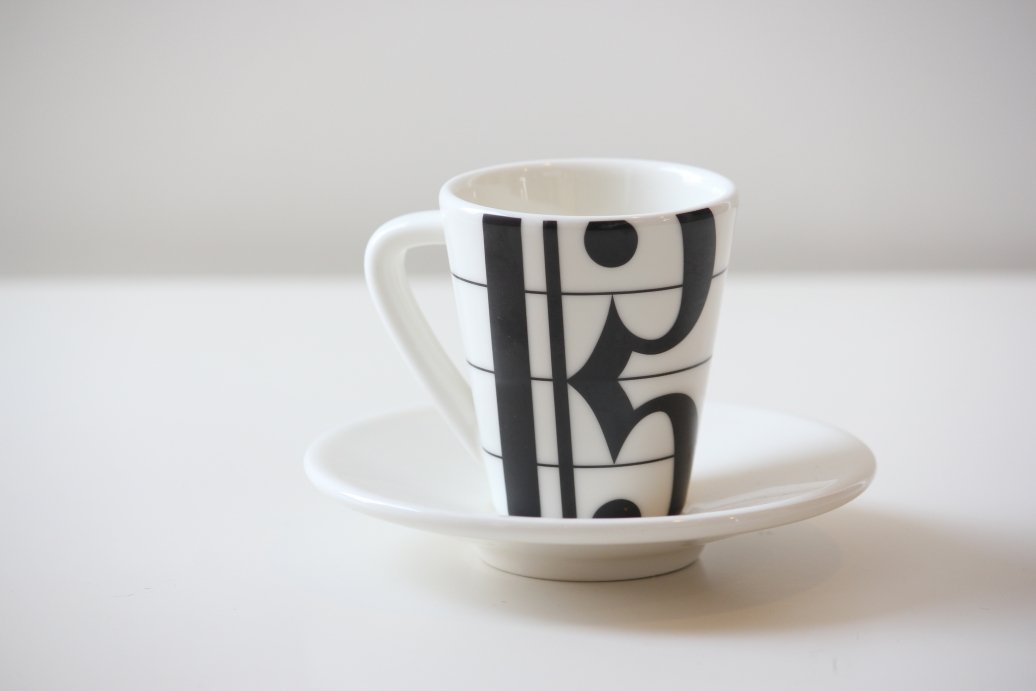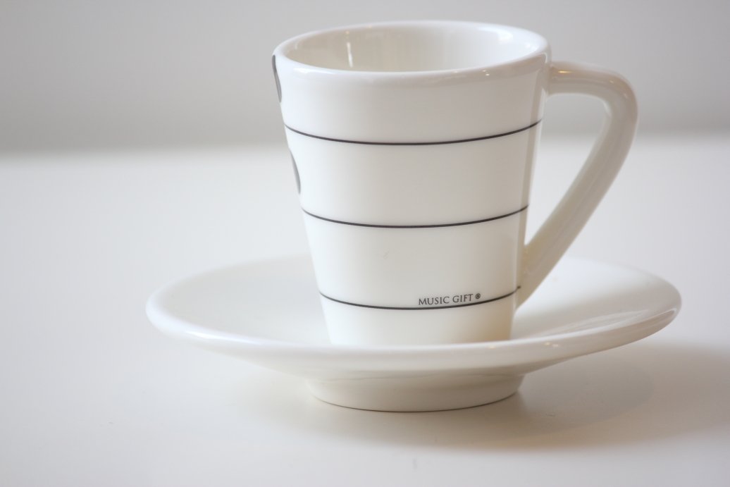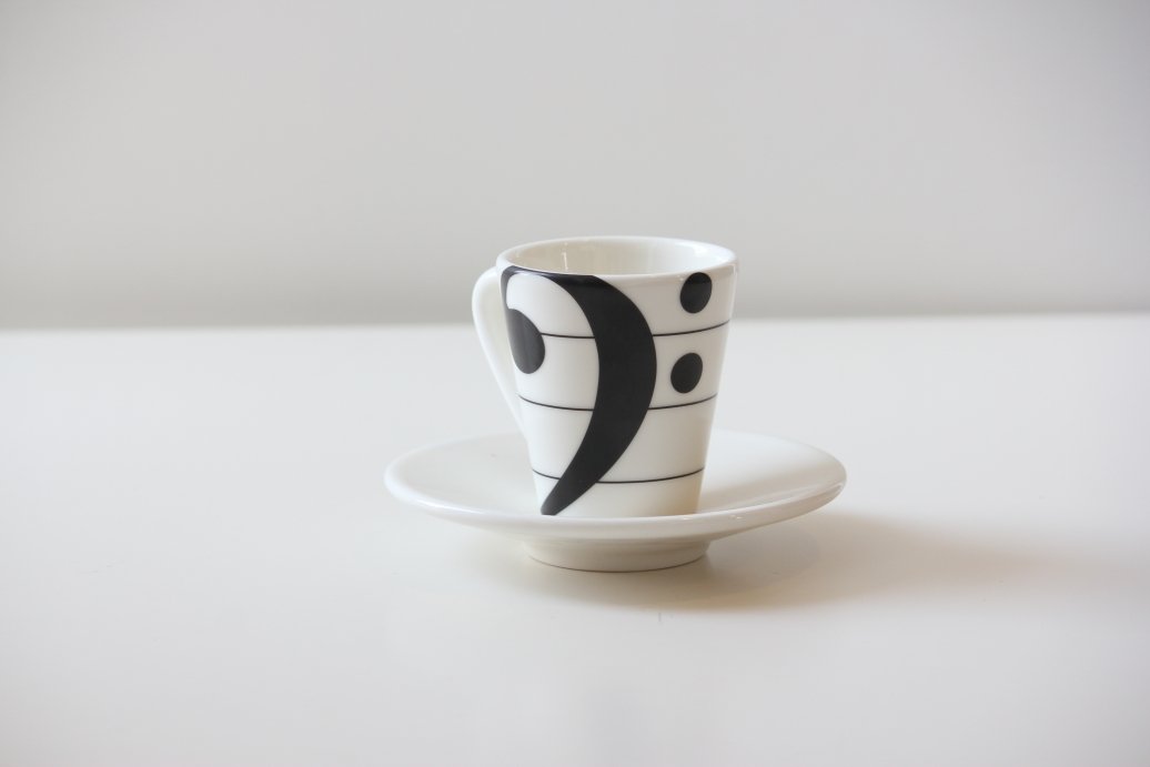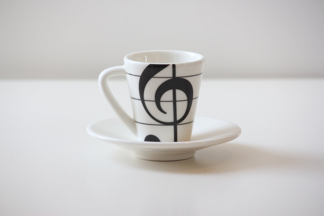 [Set 3 coffe cups & saucers-musical symbols.]