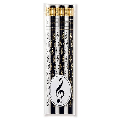 Lot de 6 Crayons à Papier - Clef de Sol (Blanc / Noir);