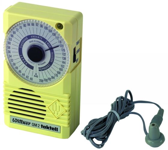Description : Le métronome Taktell Quartz QM 2 est aussi efficace que simple d'utilisation. D'une précision redoutable, le battement reste puissant. Caractéristiques : Fabriqué en Matière Plastique très Résistante. Ajustable de 40 à 208 battements par minute. 39 Positions 1 Led lumineux et Click Sonore / Mode Silencieux (uniquement Led Lumineux). Diapason La 440. Oreillete Fournie. Pile de 9 V incluse. 106 x 61 x 28 mm Couleur Ivoire.' ' ' •Métronome électronique' • Tempo de 40 à 208 battements/minute' • Indication des battements par haut-parleur et LED' • Sélecteur pour indication sonore et visuelle' • Précision +/- 0,02%' • La de référence 440 Hz' • 106 x 61 x 28 mm' • Livré complet avec écouteur et pile 9V