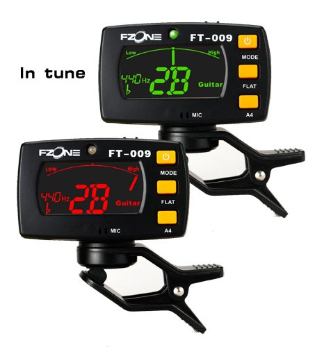 Mode accordeur : - écran rétro-éclairé (vert et rouge) - calibrage : de La 430 à 450 mHz - micro externe ou via le micro-pince inclus - le nom de la note change de couleur quand l'accord est bon - accordage mineur