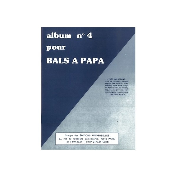 Descriptif : Album Pour Bals A Papa N°4 Partitions Pour Piano Ou Accordéon, Paroles Et Accords.
