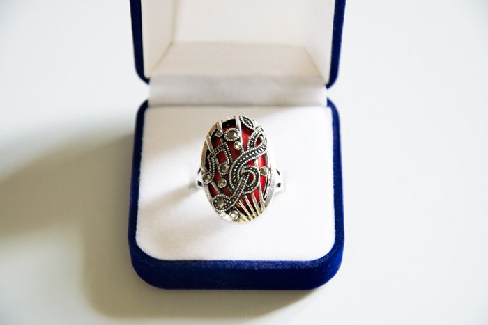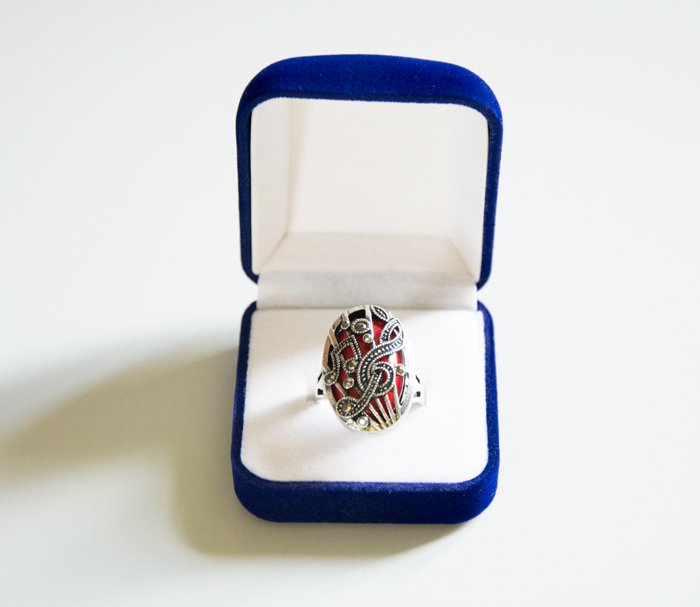 Bague Fantaisie - Motifs Musicaux Rouge
