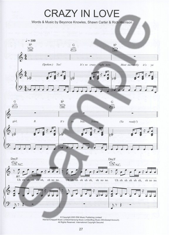 Descriptif : Compilation de Partitions pour Piano, Voix et Guitare (grilles d'accords) du Meilleur de Beyonce.