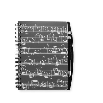 Calepin - Grand Format - Partition (Noir / Notes Blanches) + Stylo