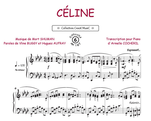Descriptif : Cette partition est issue de la collection CrocK'MusiC constituée de transcriptions de chansons françaises pour le Piano, acompagnées de leurs paroles.