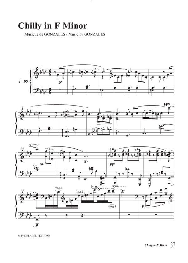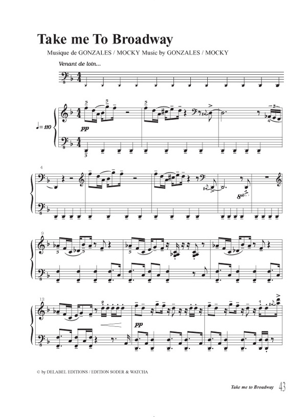 Descriptif : Complément du Notebook Vol.1, ce recueil contient les 8 autres pièces issues du fameux album `Solo Piano` + 3 Inédits : tout d'abord, One Evening de Feist version piano Solo de Gonzales, et pour tous ceux qui auront eu la chance de voir Gonzales sur Scène, Chilly in F Minor et Take me To Broadway retranscrits note à note dans leur version Live.