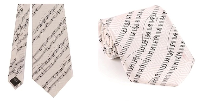 Cravate en Soie - Portée Musicale à Motif Losange Ecru