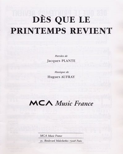 Plante, Jacques / Aufray, Hugues : Dès Que Le Printemps Revient