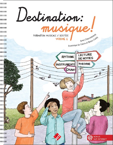 Descriptif : Destination Musique est une méthode de formation musicale pour la 1re année de cycle 1 de conservatoire, qui s’adresse à un public d’enfants de 6 à 9 ans, encadrés par leur professeur. ' ' Tout en respectant les programmes et la rigueur indispensable à un tel ouvrage, cette méthode a pour double objectif de changer l’image d’un apprentissage rébarbatif, et de proposer une progression pédagogique réaliste. Présentée sous forme de «livre unique», chaque cours fait l’objet d’une double page dans laquelle sont proposés des exercices de lecture de notes, de rythmes lus et / ou frappés, une notion théorique ainsi qu’un chant avec accompagnement piano. Tous les quatre cours, une double page «escale» permet de réviser les notions abordées pendant les cours précédents, afin d’ancrer les acquis. Des double-pages «instruments» avec conseils d’écoute jalonnent également l’ouvrage. ' ' Afin de faciliter l’apprentissage à domicile, les audio correspondant aux leçons et exercices sont librement disponibles en téléchargement. ' ' Joliment illustrée, pensée pour une utilisation sérieuse mais non rigoriste, cette méthode projette les élèves et le professeur dans un univers musical et poétique dont l’ambition affichée est de mettre de la bonne humeur dans le cour de Formation musicale ! ' ' Livre unique organisé par cours, pédagogie réaliste et progressive, mise en page claire et illustrée. Chants avec accompagnement piano. ' Méthode de 88 pages, illustrations couleur par Valérie Michel ; conçu et fabriqué en France.