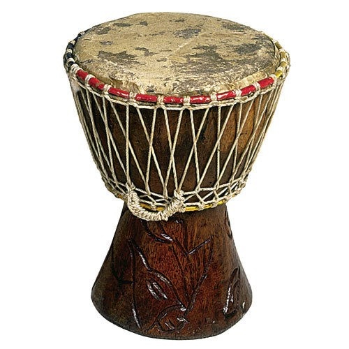 Descriptif : Fabriqué dans la région des pays Mandingues, ces djembés sont taillés dans des bois rouges (teck). ' ' Aucun entretien n'est nécessaire.' ' ø 13 cm - H. 19 cm. ' Les dimensions peuvent varier selon les djembés.