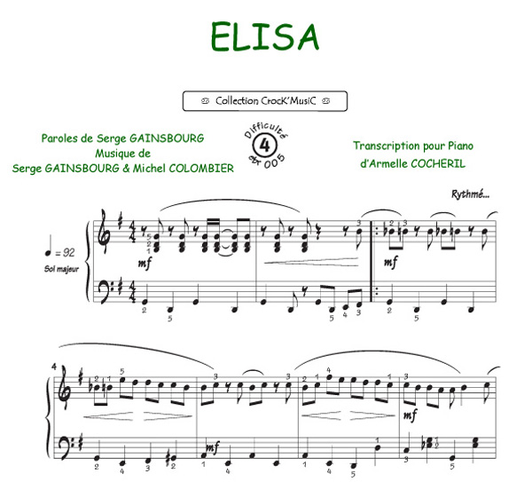 Descriptif : Cette partition est issue de la collection CrocK'MusiC constituée de transcriptions de chansons françaises pour le Piano, acompagnées de leurs paroles.